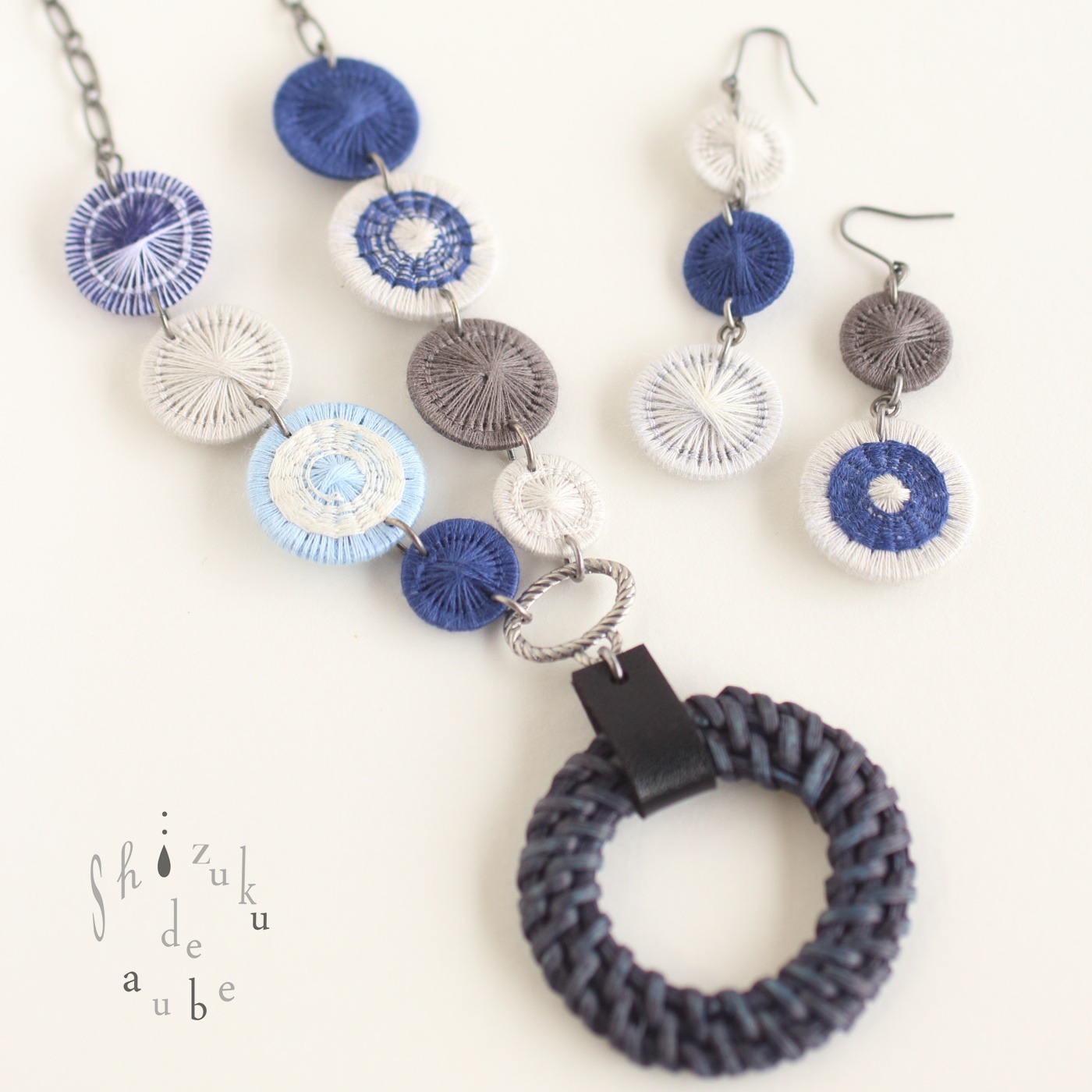 お客様にとても好評なこの糸ボタンが絶えぬよう、ごく微力ながら、セッセとアクセサリーに仕立てたいと思います。