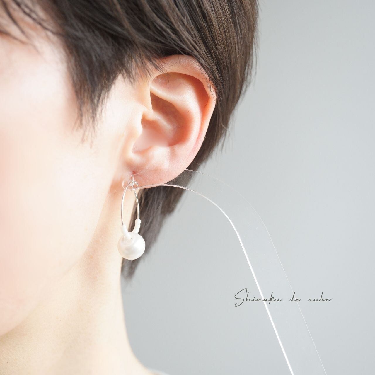 5. ひと粒 パール ドロップ フープ ピアス ☆ プレゼント付き スプリング サマー 上品 シンプル 輪っか